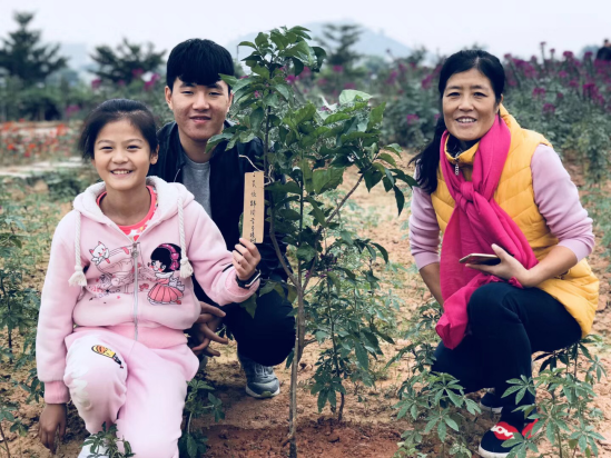 賞完了美景,是我們小記者今天最重要的活動(dòng)了,由自己命名的栽植黃皮樹。我選了一棵特別漂亮的黃皮樹,挖好坑,施上肥,我把黃皮樹輕輕地放在坑里,填滿了土,澆上水,和它合了個(gè)美麗的靚影!