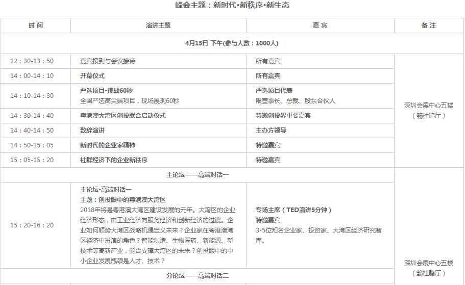 2018總裁創(chuàng)新峰會(huì)以“新時(shí)代、新秩序、新生態(tài)”為主題,秉承“全球智慧、共享發(fā)展”理念,以全球化視野的戰(zhàn)略性眼光,順勢(shì)大眾創(chuàng)業(yè)、萬眾創(chuàng)新和粵港澳大灣區(qū)的戰(zhàn)略機(jī)遇,積極推動(dòng)建設(shè)新時(shí)代企業(yè)命運(yùn)共同體,通過“主旨演講+高端對(duì)話+資本對(duì)接會(huì)”,圍繞科技、產(chǎn)業(yè)、金融,關(guān)注創(chuàng)新創(chuàng)業(yè)與創(chuàng)投,邀請(qǐng)政界領(lǐng)袖、中外知名企業(yè)總裁,500強(qiáng)企業(yè)商學(xué)院院長(zhǎng)、知名投資家、智庫專家、商會(huì)協(xié)會(huì)代表、財(cái)經(jīng)媒體等,共同探討新經(jīng)濟(jì)背景下中國(guó)企業(yè)可持續(xù)發(fā)展的機(jī)遇與挑戰(zhàn)。