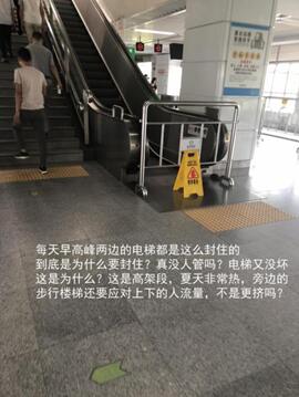 在7月2日的這條投訴中,有市民還指出了電梯停運(yùn)時(shí)間的不合理,稱木棉灣站的地鐵每逢工作日高峰期就“暫停使用”,到了平峰期就正常運(yùn)行。這也引起了其他一些乘客的質(zhì)疑。家住木棉灣站附近的李先生說:“非高峰時(shí)段電梯就能用,說明電梯本身沒問題,那為什么不開放給人多的時(shí)候用呢?”市民張先生則認(rèn)為,地鐵方面可能是為了降低維護(hù)成本,“怕人多踩壞了,要花錢花時(shí)間修唄”。但也有市民猜測(cè)電梯停運(yùn)或有安全方面的考慮。“畢竟不會(huì)無(wú)緣無(wú)故就停了吧,可能是考慮到高峰客流量多,所以關(guān)掉不用的?!倍排勘硎?,可以接受因?yàn)榘踩珕栴}而采取的停運(yùn)措施,“走走樓梯也沒有什么。