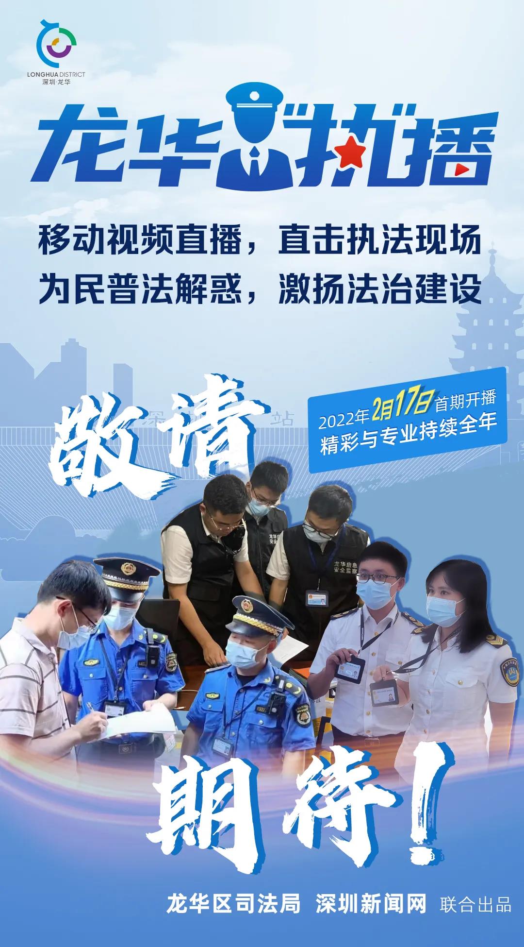 龍華“執(zhí)”播是深圳新聞網(wǎng)聯(lián)合龍華區(qū)推出的首檔直播式執(zhí)法行動(dòng)欄目,是規(guī)范行政執(zhí)法行為、調(diào)動(dòng)社會(huì)力量參與行政執(zhí)法監(jiān)督,豐富普法宣傳渠道的創(chuàng)新舉措,吸引70萬(wàn)網(wǎng)友參與直播。2022年全區(qū)將至少開(kāi)展20期“龍華‘執(zhí)’播”行動(dòng),邀請(qǐng)人大代表、政協(xié)委員、熱心市民等參與,執(zhí)法全程將進(jìn)行實(shí)時(shí)網(wǎng)絡(luò)直播,讓市民“零距離”參與執(zhí)法行動(dòng)。