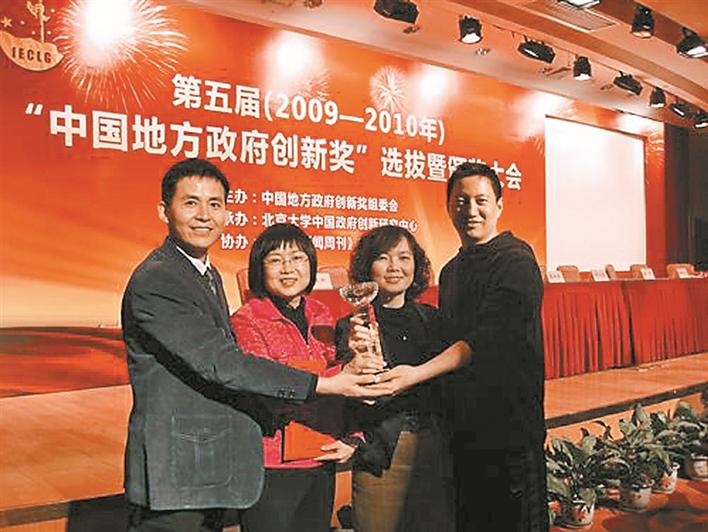 2010年1月17日,深圳社會組織改革榮獲第五屆“中國地方政府創(chuàng)新獎”,馬宏(左二)等領取獎杯。