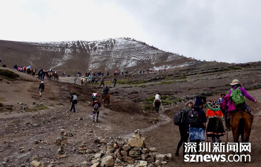 深圳新聞網(wǎng)訊 彩虹山被當(dāng)?shù)厝朔Q為維昆尼卡。深藏于秘魯庫斯科古城附近的安第斯山脈之中,多年來它一直隱藏在冰雪之下,據(jù)說是因為溫室效應(yīng),雪線升高露出真容,才于2016年被發(fā)現(xiàn),并迅速成為世界知名景點。這里可以觀賞到的還有冰川、高山草甸、羊駝以及當(dāng)?shù)厣贁?shù)民族的風(fēng)情。李仁奇攝