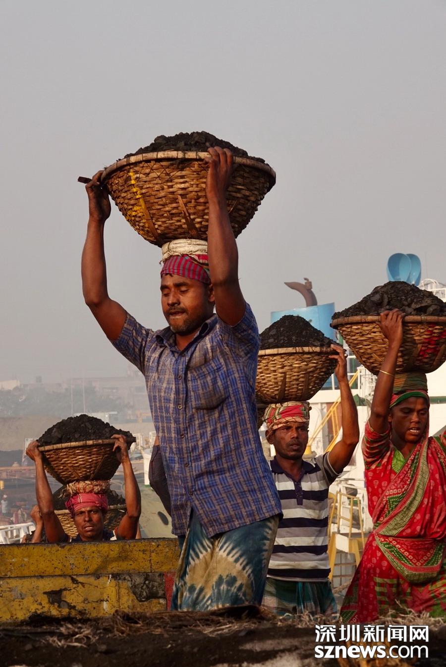 碼頭勞工裝卸作業(yè)的場面很震撼,令人慨嘆人生的艱辛。李仁奇攝
