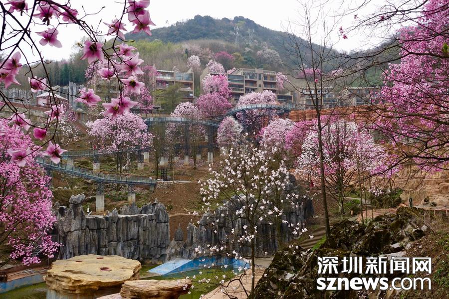 雨霧濛濛之中觀賞盛開(kāi)的辛夷花,宛若置身仙境......李仁奇 攝