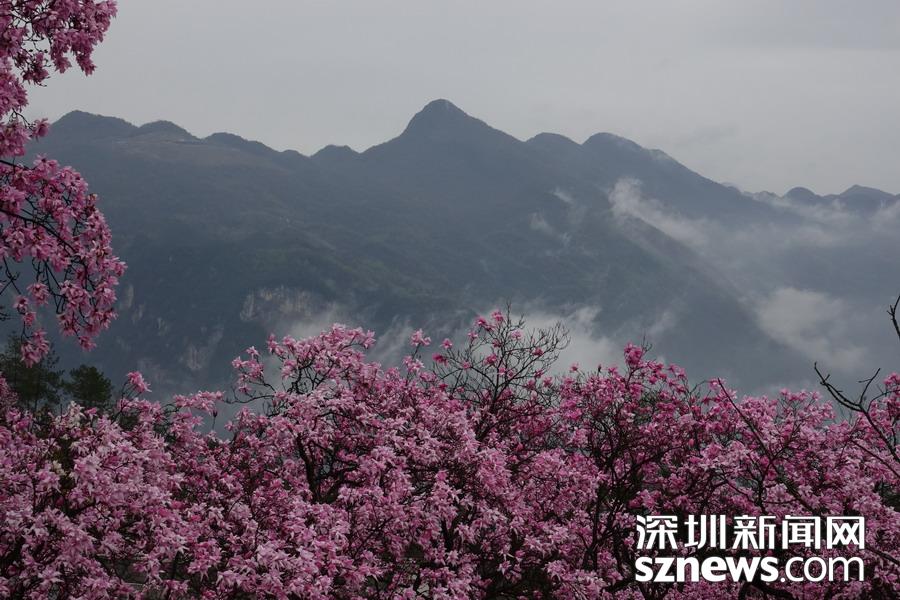 北川藥王谷,雨霧濛濛之中觀賞盛開(kāi)的辛夷花,宛若置身仙境......李仁奇 攝