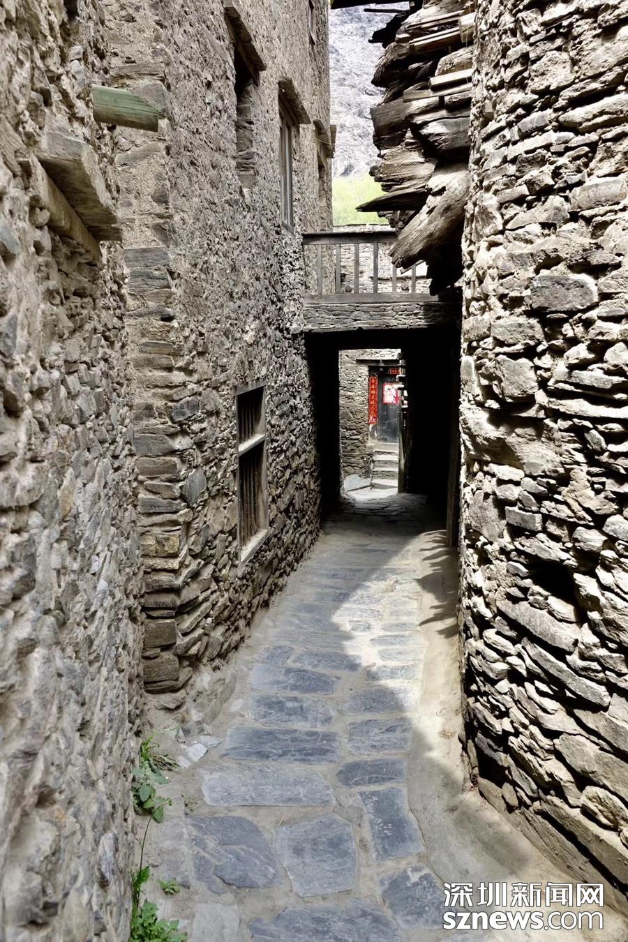 寨子是一處石碉與民居合二為一的建筑群,片石與黃泥砌成的堅(jiān)固經(jīng)歷了無數(shù)的地震后仍完好無損。墻體和墻體之間的巷道深幽而神秘,因一些巷道上搭建了房屋,于是有了無數(shù)暗道,走入其中就像步入了歷史的迷宮。李仁奇 攝