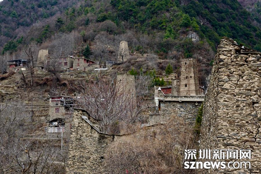 黑虎羌寨古稱“黑貓寨”,修建于唐代以后。是當(dāng)?shù)匾恢甲逍〔柯錇榈钟练謹(jǐn)_建起來的“邛籠”(石砌碉樓)。古寨中現(xiàn)在留存高高矗立的十一座羌碉,保持著當(dāng)年風(fēng)煙滾滾的御敵氣勢(shì)。李仁奇 攝