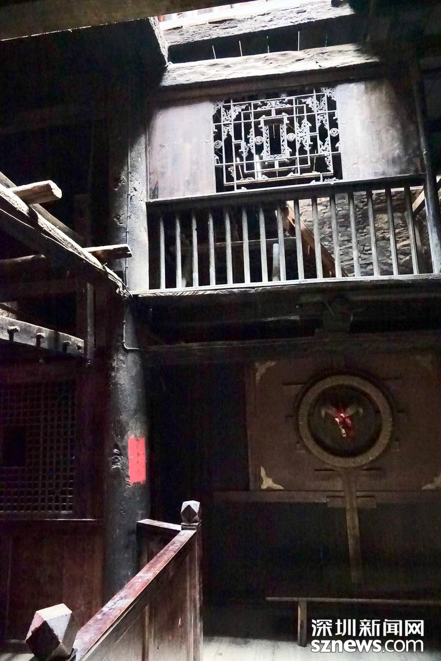 碉樓是整個(gè)寨子的標(biāo)志性建筑,目前僅存兩座,一座是陳仕明家的住宅,另一座雄踞在寨子對(duì)面的河岸上。碉樓分為9層,高30米左右,各層四方開有射擊窗口,頂樓的鐘孔是作為傳遞消息用的。李仁奇 攝