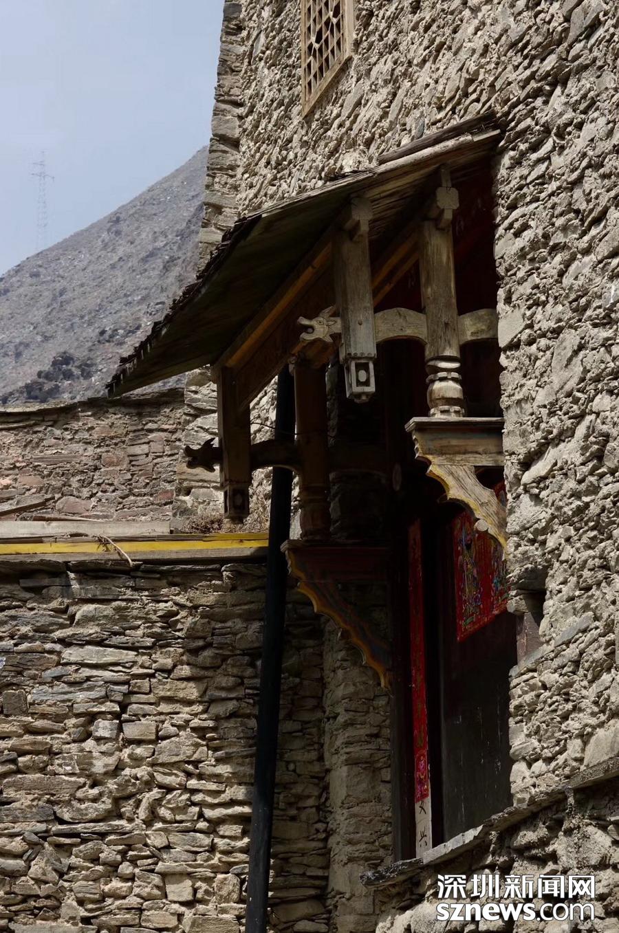 民居內(nèi)房間寬闊、梁柱縱橫,一般有二至三層,上面作為住房,下面設(shè)牛羊圈舍或堆放農(nóng)具,屋內(nèi)房頂常壘有一"小塔",供奉羌人的白石神(一塊卵狀白色石頭)。李仁奇 攝