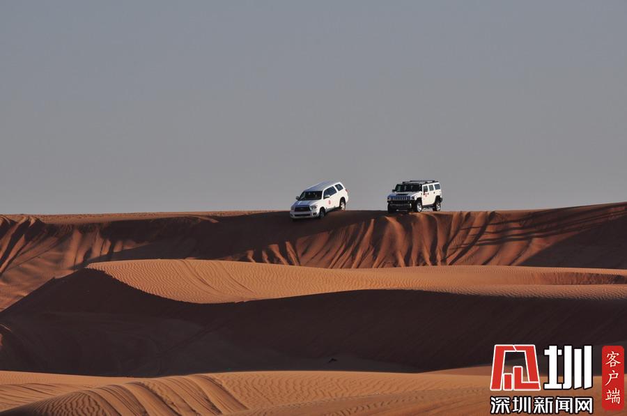 隨著越野車內(nèi)的驚聲尖叫,駕駛員已加大油門沖上前方的沙丘,高度不斷增加,坡度也越來越大,有時會達到六七十度,就在感覺車幾乎要翻的時候,突然整個身體失重,隨著陣陣尖叫,每個人都緊緊抓死把手,當你落到座位上坐穩(wěn)時,才反應(yīng)過來越野車已從很高的沙丘上俯沖了下來!李仁奇攝