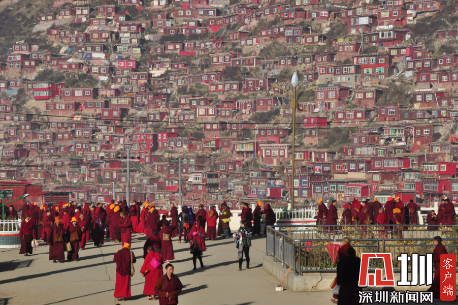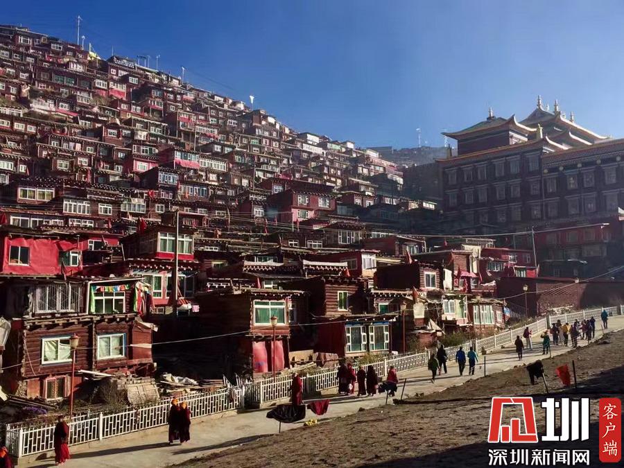 色達五明佛學院距四川省甘孜州色達縣城20余公里,在一條海拔4000米左右、名叫喇榮溝的山溝里。李仁奇攝