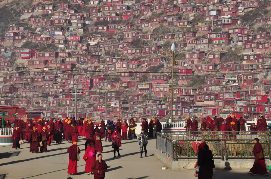 色達佛學院的僧舍令人嘆為觀止,連綿數(shù)公里的山谷布滿了密密麻麻的小木棚屋。李仁奇攝