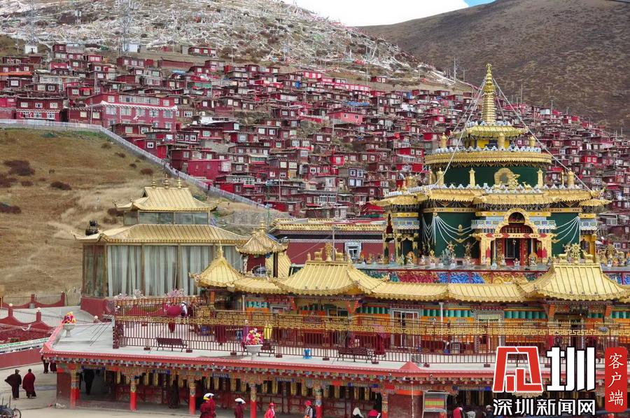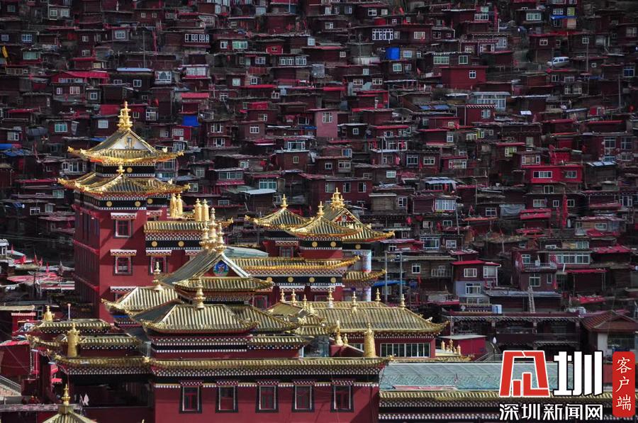 谷底和山梁上分布著幾座寺廟和佛堂,裝飾考究,金碧輝煌。李仁奇攝