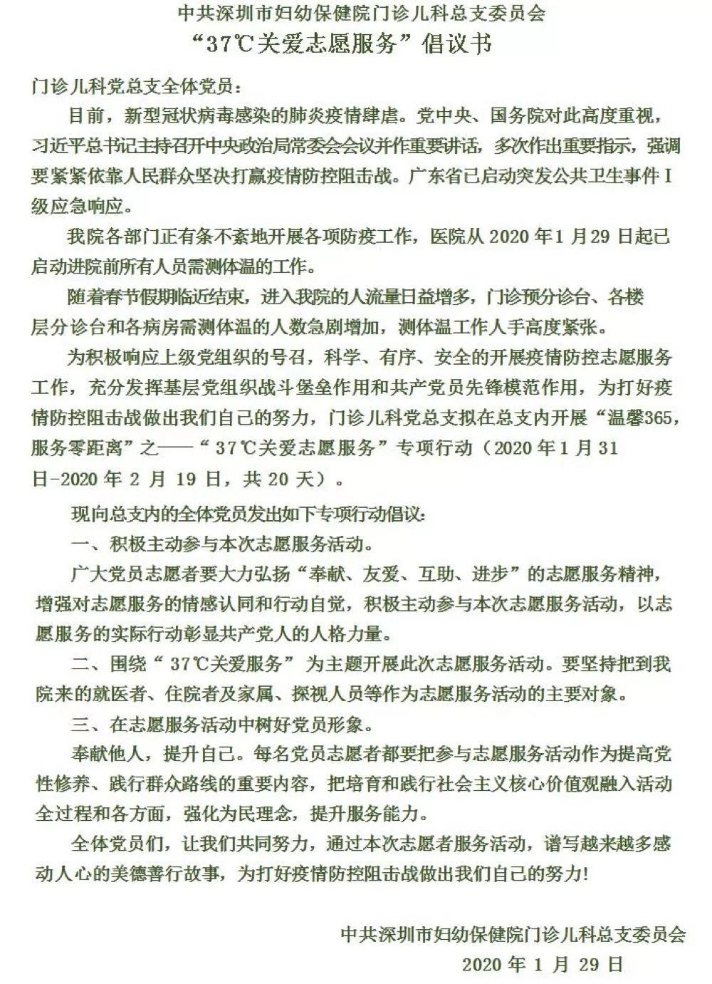 新型冠狀病毒感染的肺炎疫情發(fā)生后,深圳市婦幼保健院黨委積極貫徹落實習近平總書記關(guān)于疫情防控重要指示精神,在市委和衛(wèi)生工委的堅強領(lǐng)導下,充分發(fā)揮基層黨組織和廣大黨員干部的戰(zhàn)斗堡壘作用和先鋒模范作用,以實際行動踐初心擔使命,團結(jié)帶領(lǐng)全院職工,為打贏疫情防控阻擊戰(zhàn)提供了堅強保證。