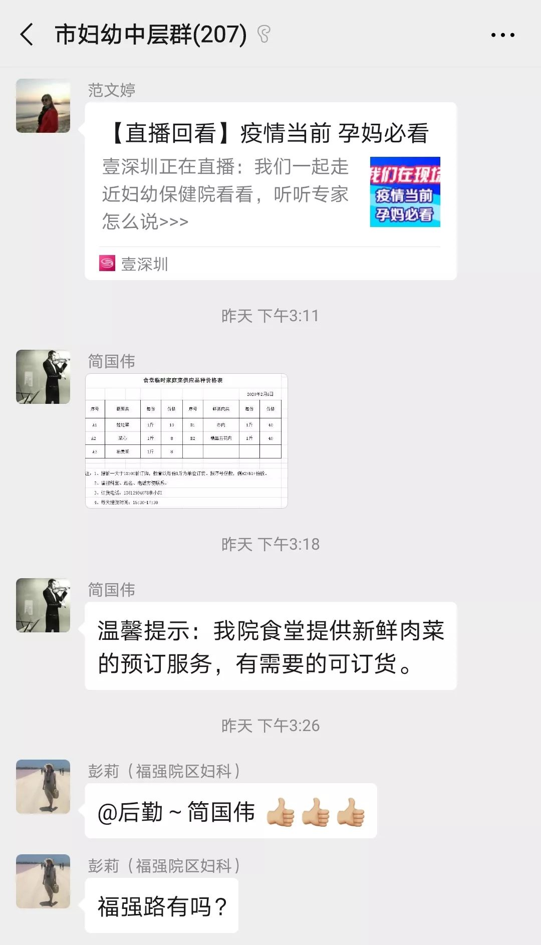為保障醫(yī)院物資充足,后勤管理科按照醫(yī)院要求,及時完成相關(guān)物資采購。另外,保證在崗職工飲食健康,專門調(diào)配營養(yǎng)餐,增加牛奶和水果。同時,鑒于疫情期間大家不方便去公共區(qū)域的情況,還為廣大員工增加預(yù)訂新鮮肉菜的服務(wù)。