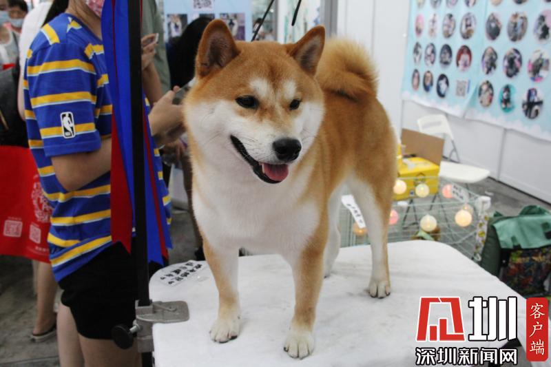 市民在現(xiàn)場給參展的寵物狗們拍照。