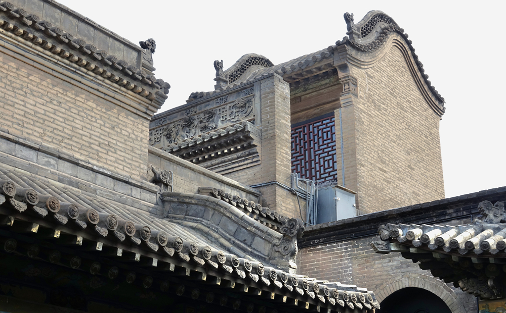 喬家大院三面臨街,四周是高達(dá)10余米的全封閉青磚墻,是我國(guó)存留地面文物最多的山西省若干“大院”中最突出的一座。李仁奇 攝