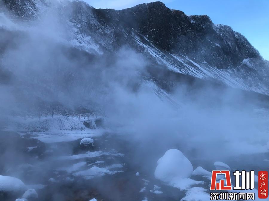周圍一片銀裝素裹,冰天雪地,而這里熱氣騰騰,煙霧裊裊,實(shí)在是別有一番景致。