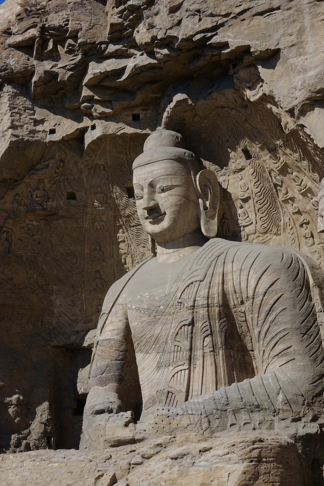 從外面看云岡石窟,經(jīng)歷1500年時(shí)光的風(fēng)雨侵襲,依然保持著挺拔的姿態(tài),不得不佩服古人當(dāng)時(shí)的建筑工藝。