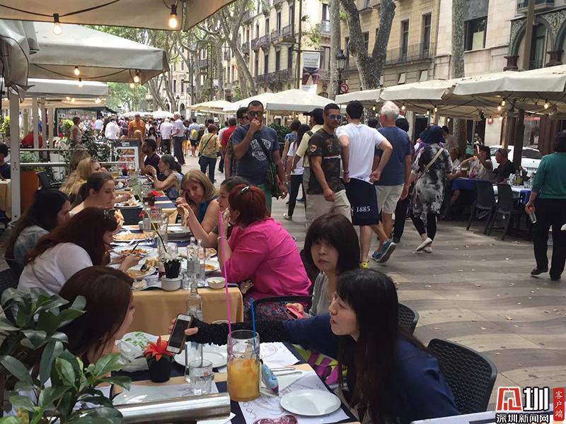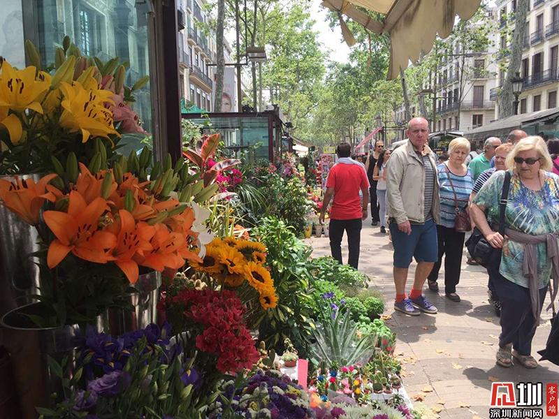 這條街連接著老城區(qū)加泰羅尼亞廣場和哥倫布紀(jì)念碑廣場兩個(gè)主要景點(diǎn),每天游人如織。圖為蘭布瑯花街。李仁奇 攝