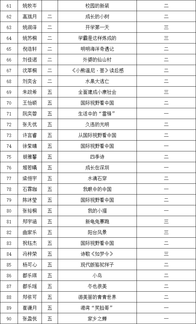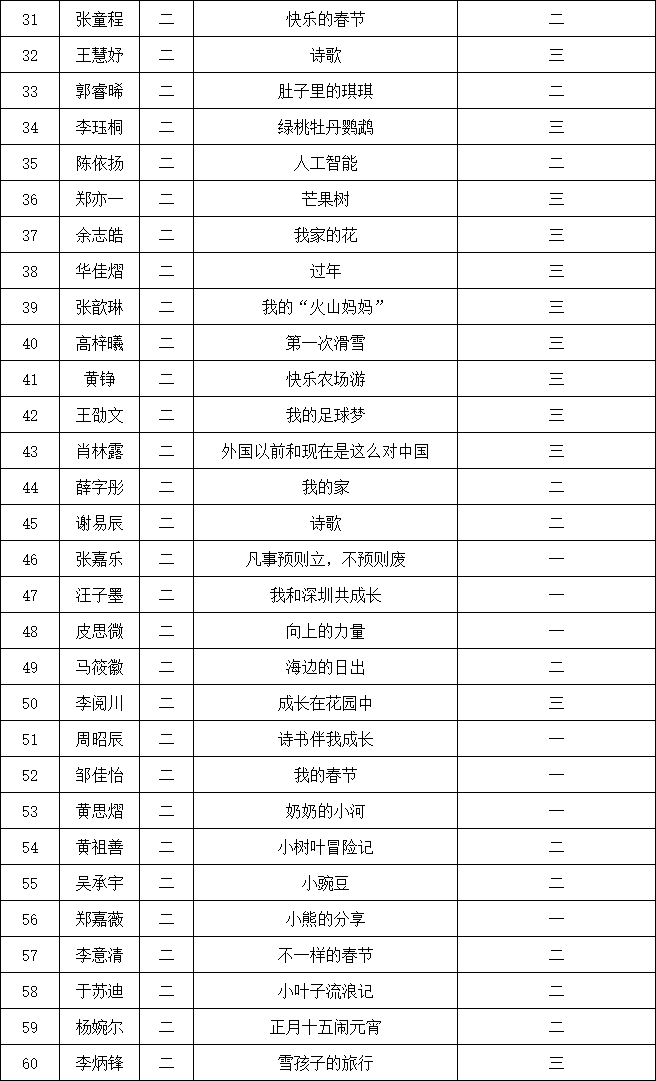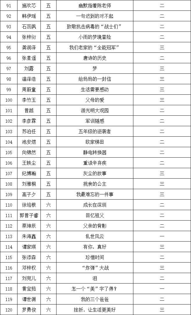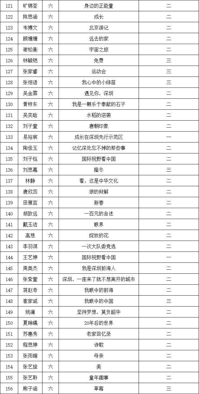 自2021年1月,活動征稿啟動以來,獲得了深圳市廣大中小學生、教師、文學愛好者的熱烈響應積極參與,吸引了深圳百余所學校的上萬人關(guān)注報名。現(xiàn)公布南山實驗教育集團前海港灣學校校園專場晉級復賽名單如下: