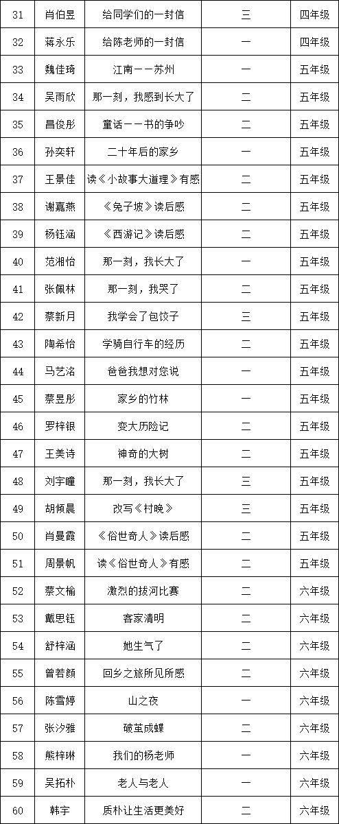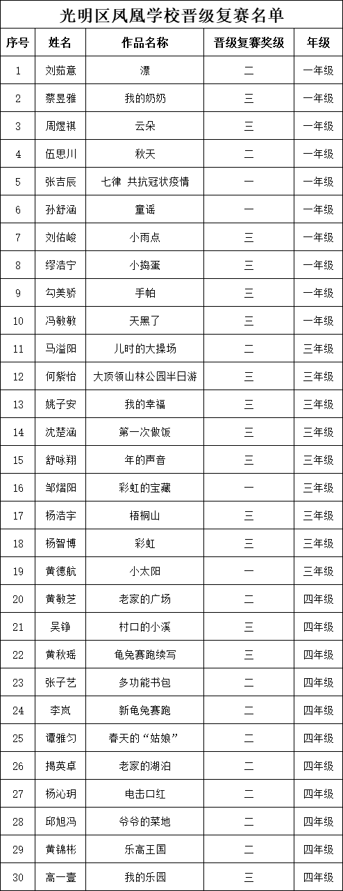 自2021年1月,活動(dòng)征稿啟動(dòng)以來(lái),獲得了深圳市廣大中小學(xué)生、教師、文學(xué)愛(ài)好者的熱烈響應(yīng)積極參與,吸引了深圳百余所學(xué)校的上萬(wàn)人關(guān)注報(bào)名?,F(xiàn)公布深圳市光明區(qū)鳳凰學(xué)校專(zhuān)場(chǎng)晉級(jí)復(fù)賽名單如下: