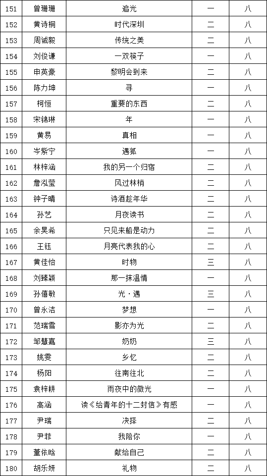 自2021年1月,活動征稿啟動以來,獲得了深圳市廣大中小學生、教師、文學愛好者的熱烈響應積極參與,吸引了深圳百余所學校的上萬人關注報名?,F(xiàn)公布福永中學晉級復賽名單如下: