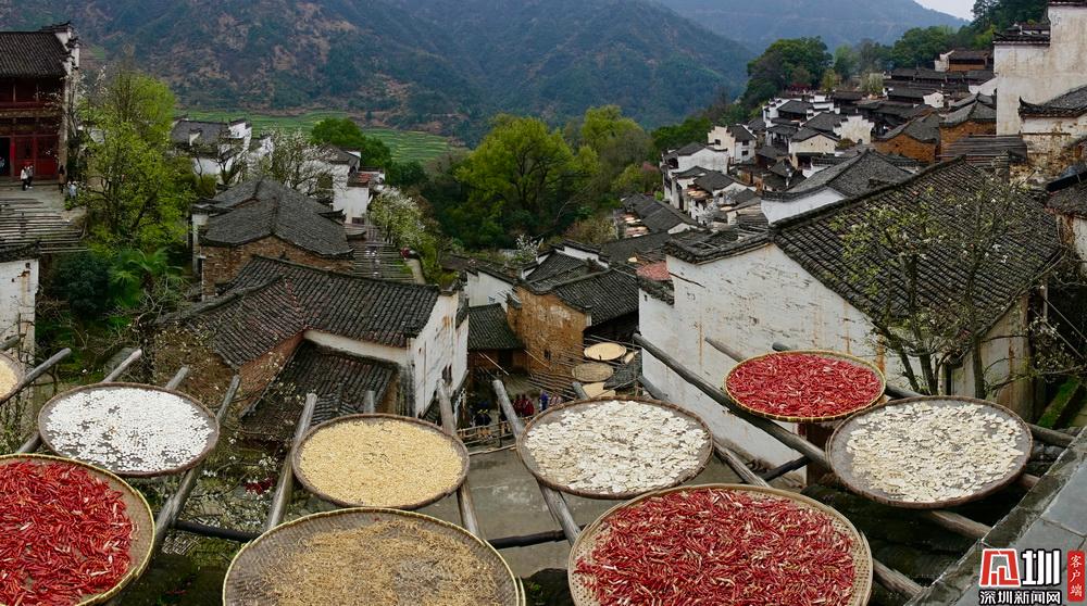 它以春天特意沿山勢種植的層層油菜花梯田和秋季“家家戶戶”晾曬各色農(nóng)產(chǎn)品的“曬秋”特色景觀聞名于全國,成為婺源旅游的打卡景點(diǎn),人氣爆棚。李仁奇 攝