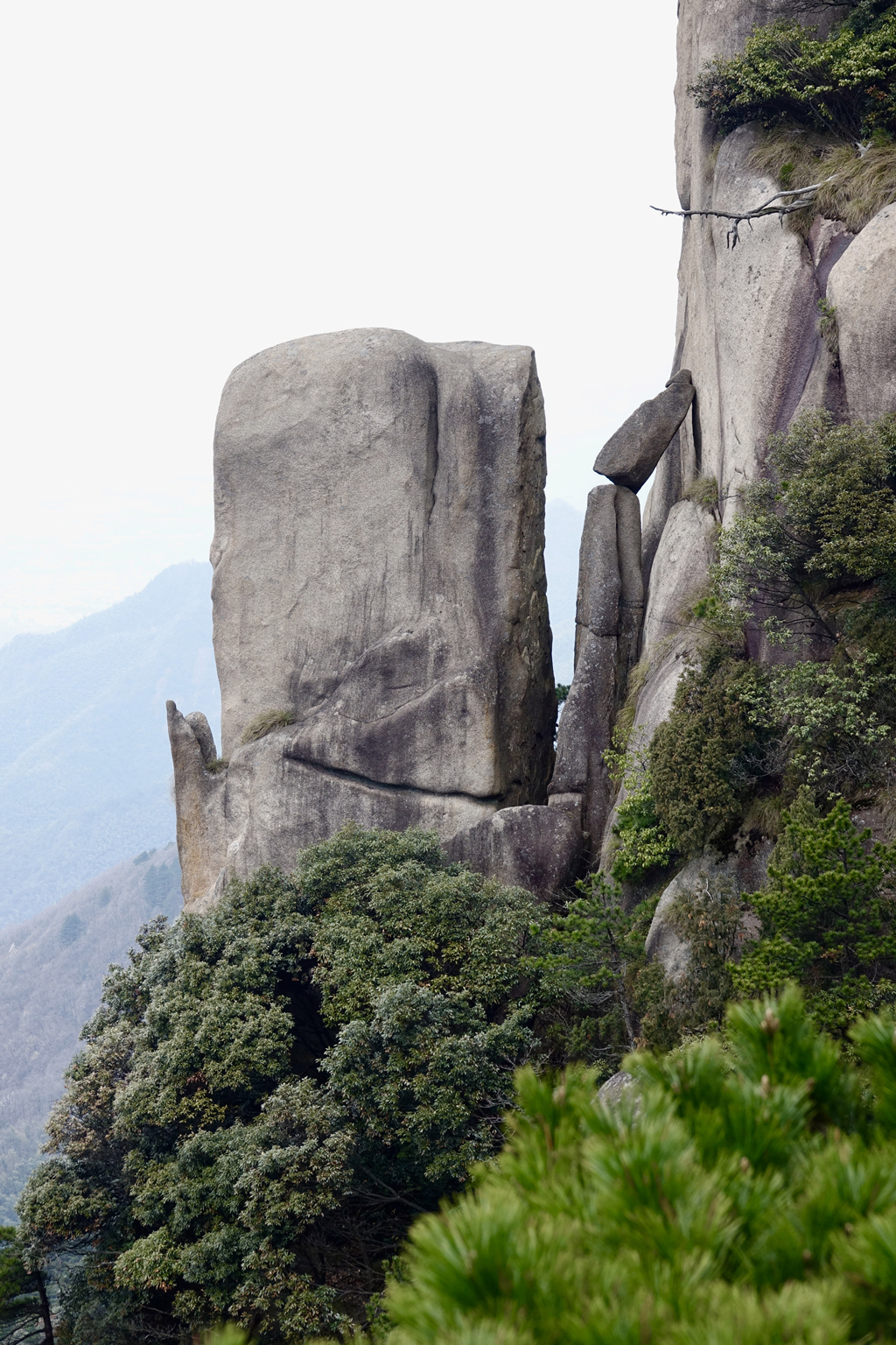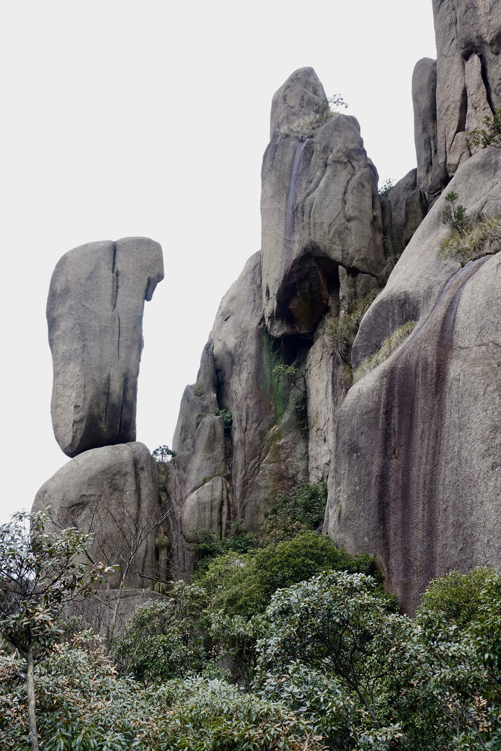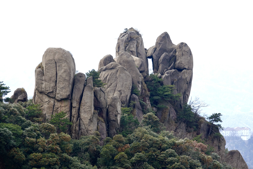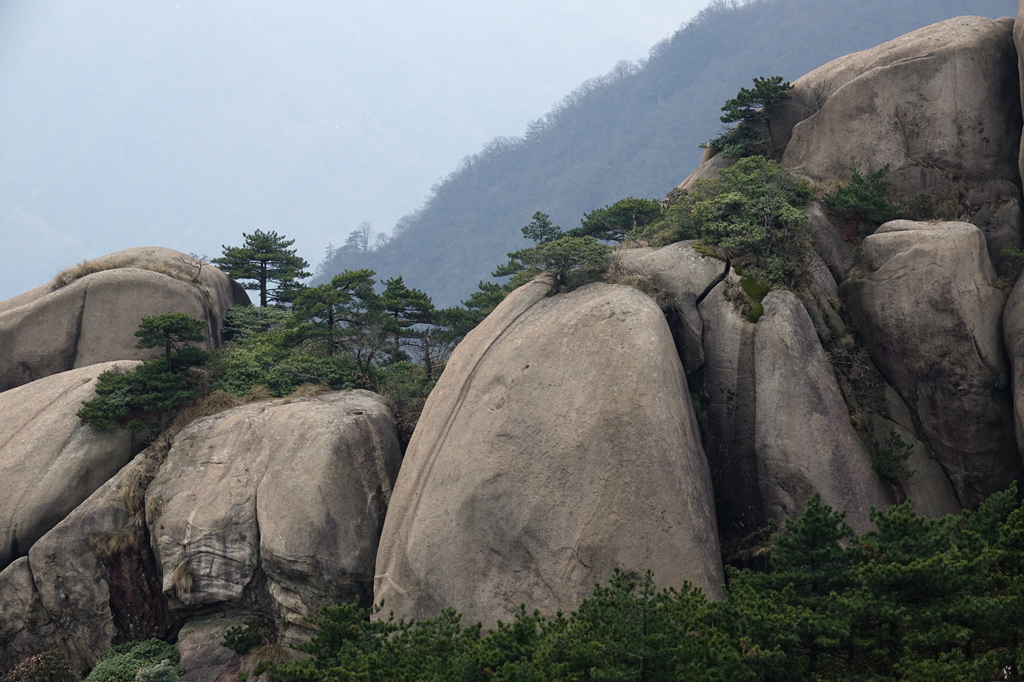 由于其隆起幅度自核心部位向周圍逐漸減小,外圍山地由硬度較花崗巖小的花崗閃長(zhǎng)巖和沉積巖組成,易被沖刷蝕低,故整個(gè)九華山體由眾多千姿百態(tài)、高低參差的中山、低山、丘陵和山間盆地等組成。李仁奇 攝