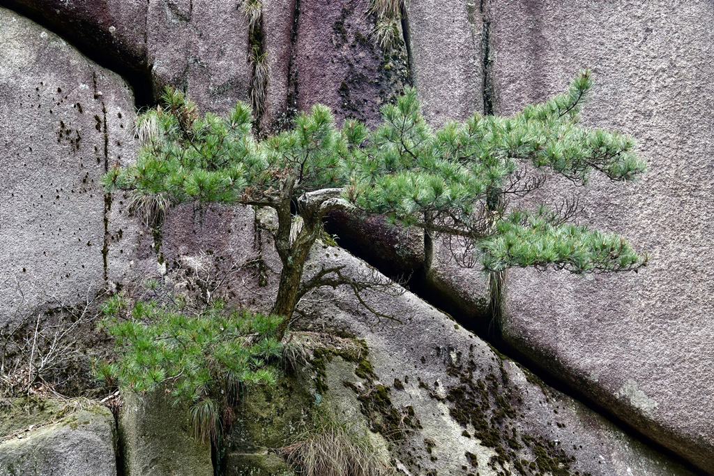 生長(zhǎng)在巖石峭壁縫隙的松樹,枝干蒼勁,郁郁蔥蔥。李仁奇 攝