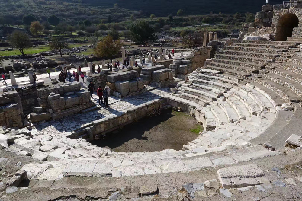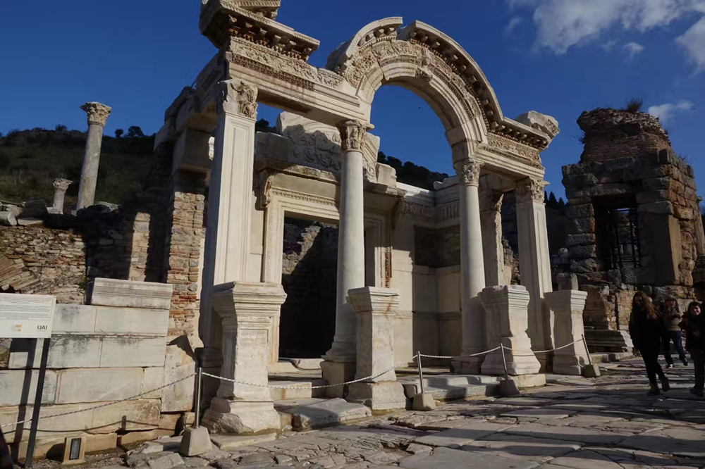 在以弗所古城遺址可以看到用大理石修建的街道、商店、市集、圖書館、柱廊大街、哈德良神殿、劇場、浴場、妓院等遺跡。走進(jìn)古城猶如穿過時(shí)光隧道,可以遙想2900多年前這座城市的繁盛情景。李仁奇 攝
