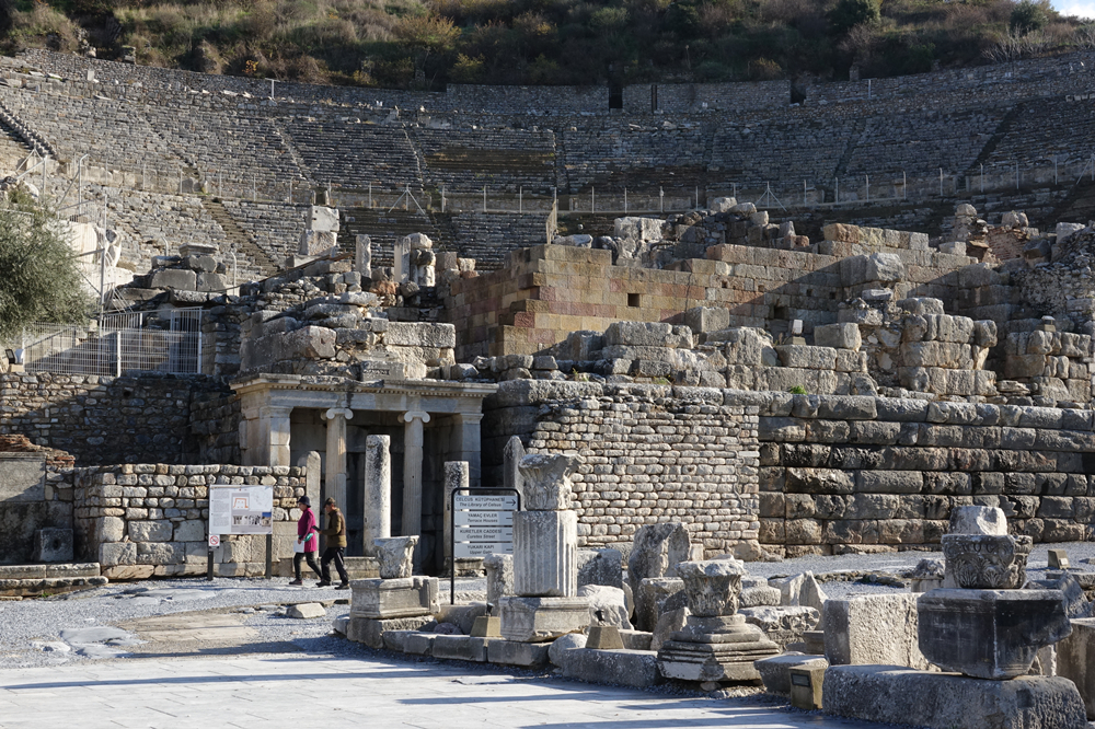 立柱背后是市政廳遺址。經(jīng)過幾百年的地貌變遷,以弗所的入??跐u漸被淤泥填塞,它賴以生存的海洋貿(mào)易遂告終結(jié),加上地中海沿岸頻發(fā)的地震,以弗所難逃被遺棄的噩運(yùn),這座新約《圣經(jīng)》中出現(xiàn)過的城市,最終淪為一片大理石廢墟。李仁奇 攝