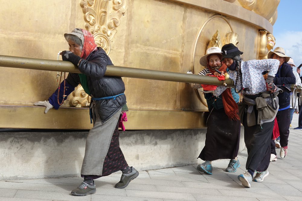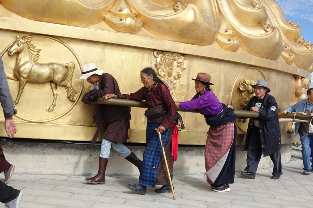 據傳,轉動經輪一周,即等同于念誦《大藏經》一遍。藏傳佛教認為,“持頌真言越多,越表明對佛的虔誠,可得脫輪回之苦”。李仁奇 攝