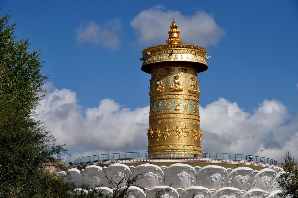 甘肅肅南裕固族自治縣的轉經筒2011年建成,直徑9米,高24.623米,一度打破香格里拉轉經筒的吉尼斯紀錄。李仁奇 攝