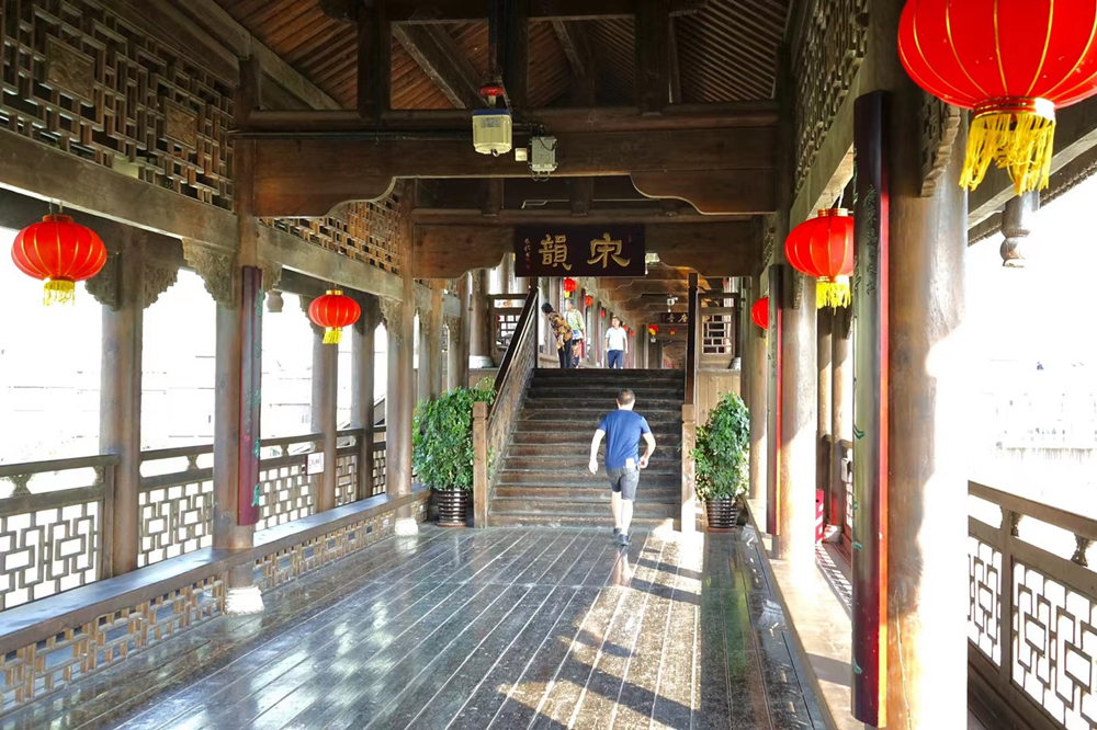 廊橋連著古鎮(zhèn),下了廊橋就進(jìn)入了古鎮(zhèn)。李仁奇 攝