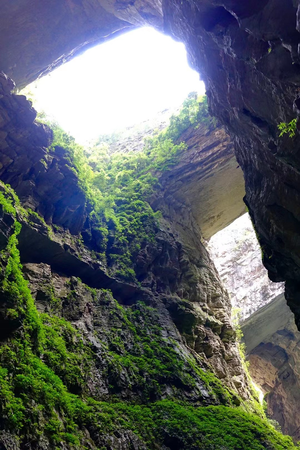 “暗河”指的是這條河流穿行溶洞的部分。里面漆黑一片,伸手不見(jiàn)五指,但中段有“蒼天有眼”(實(shí)為天生橋)奇觀,末端有形似“天下第一刀”的天空,令人稱奇。李仁奇 攝