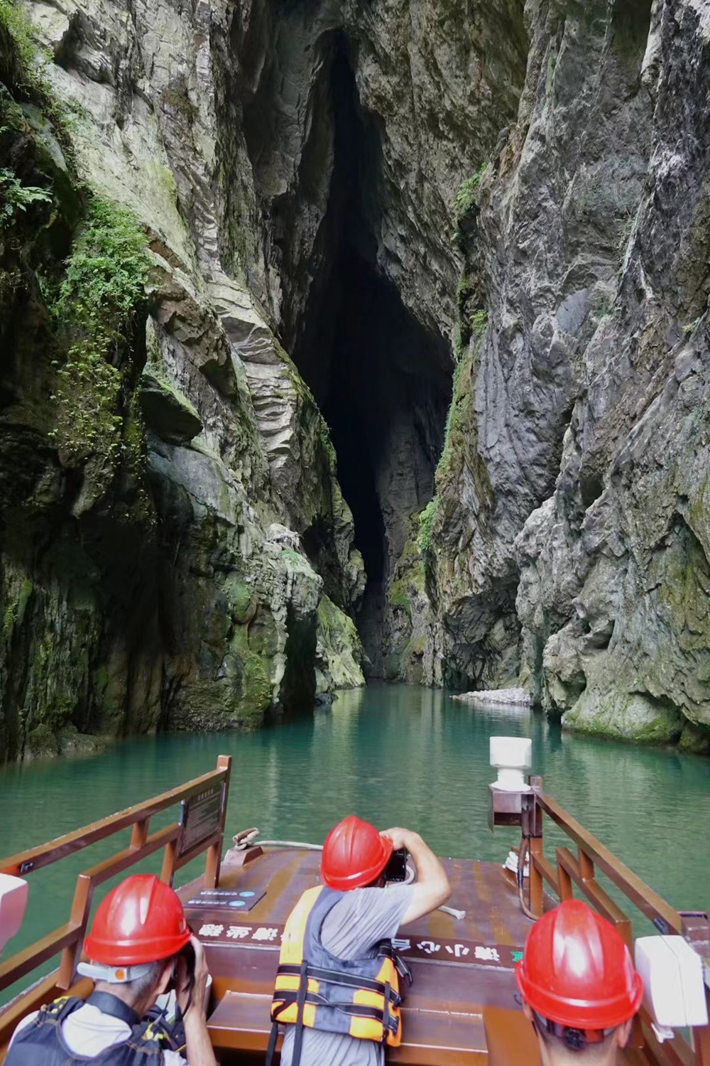 濯水古鎮(zhèn)附近神奇的蒲花暗河是濯水景區(qū)的組成部分。它由4條河流匯聚而成,全長(zhǎng)約1.6公里,其中暗河部分長(zhǎng)700余米,河水最深處達(dá)20余米,河道最窄處僅3米。李仁奇攝