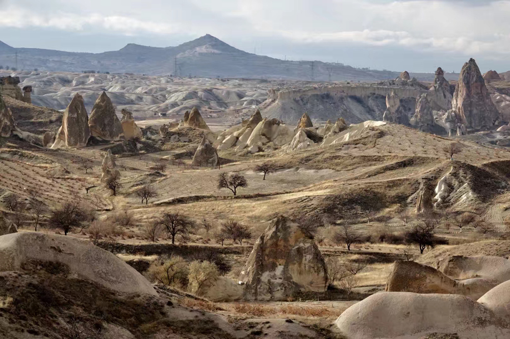 數(shù)億年前,土耳其卡帕多西亞地區(qū)的艾爾吉耶斯火山噴發(fā),改變了周圍的地形,火山灰和熔巖堆積起來形成凝灰?guī)r層。此后,被慢慢風化的巖石漸變成世界上獨一無二的地質奇觀——魔幻石柱林,人稱“精靈煙囪”。李仁奇 攝