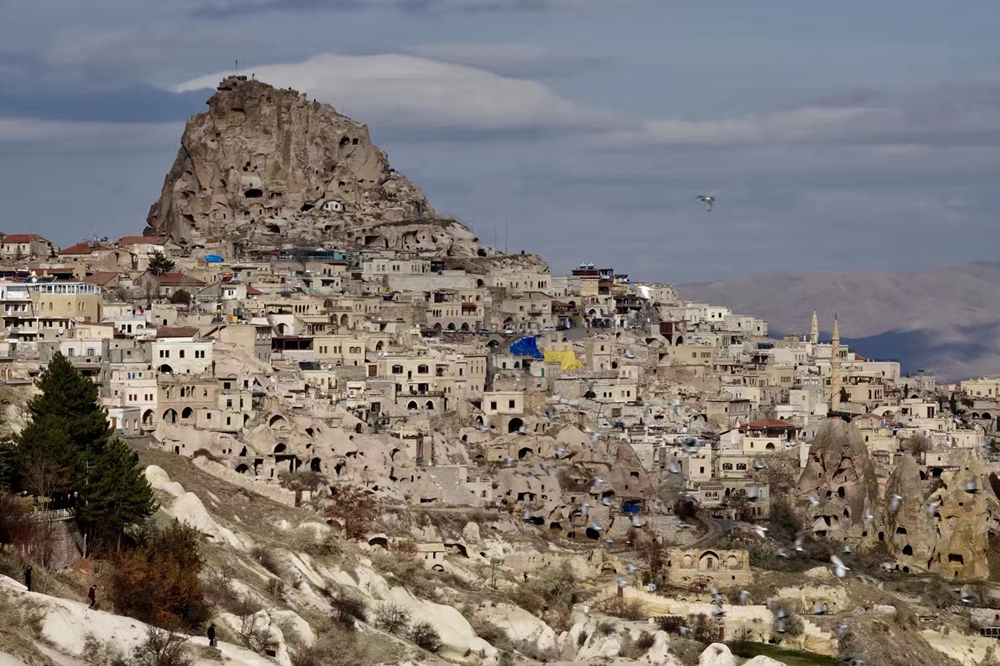 當(dāng)?shù)厝死眠@些天然柱石建室造屋,他們幾乎把所有的石柱都掏空,地上鋪上地板,頂上描上彩繪,四壁開(kāi)鑿。這些融自然美和人工美于一體的石屋,頗似我國(guó)陜北的窯洞。李仁奇 攝