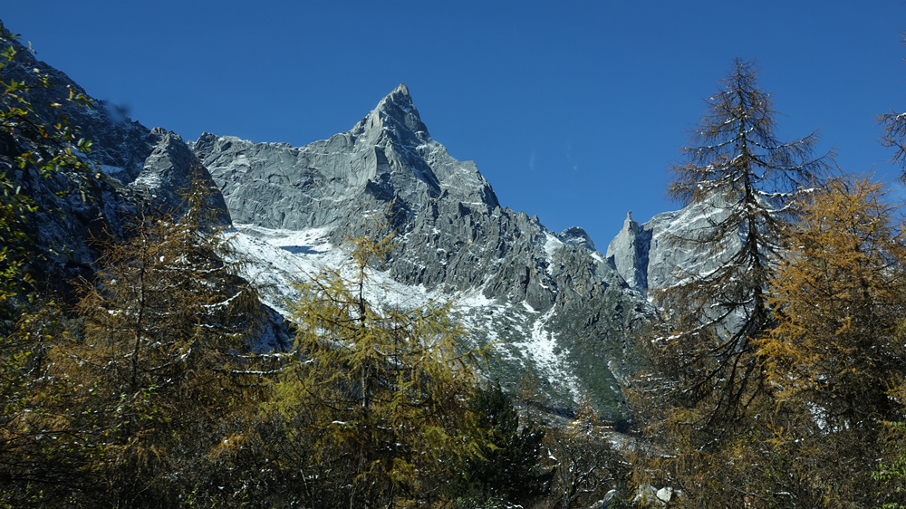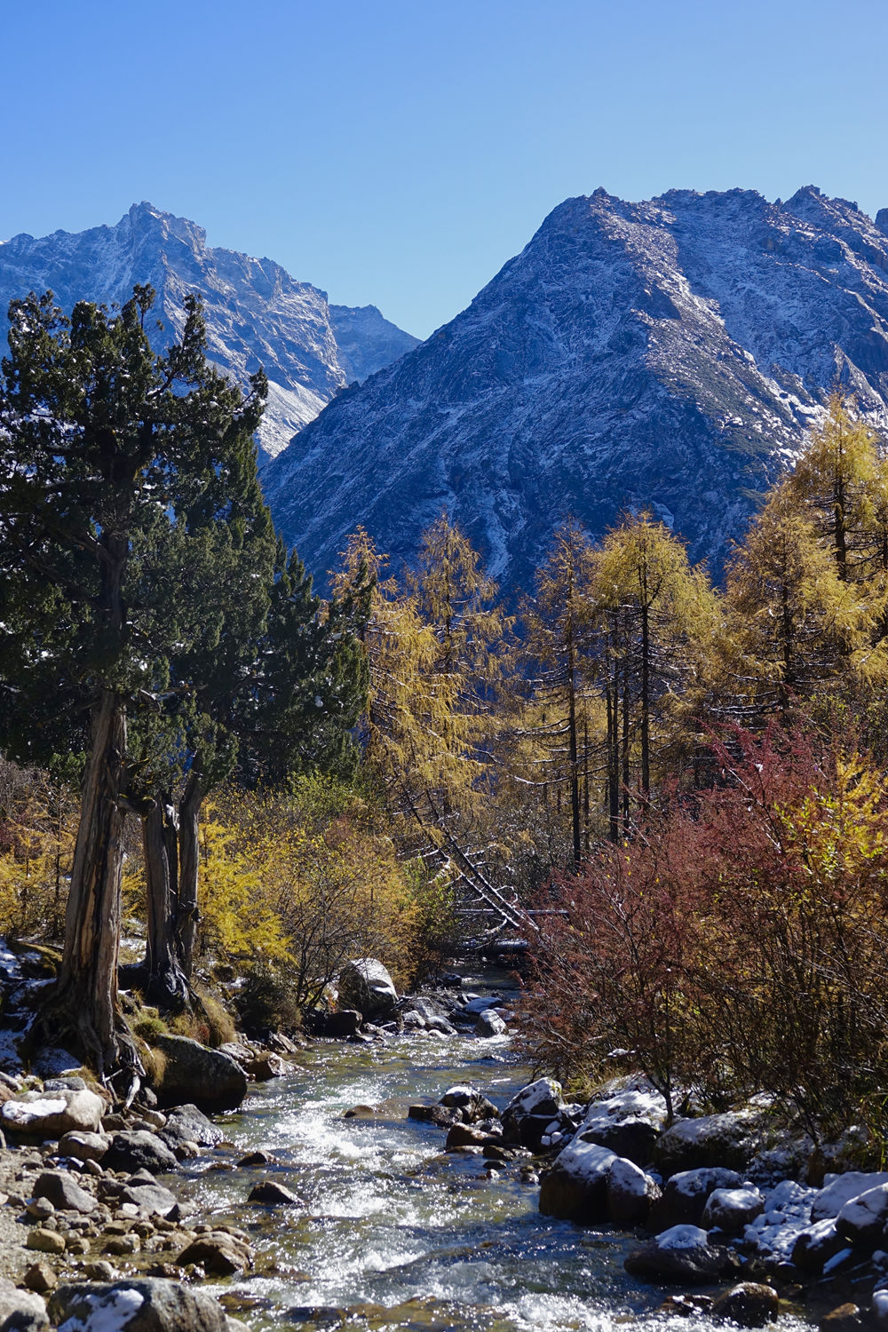 景區(qū)內(nèi)紅葉、杜鵑花種類繁多,森林原始、瀑布飛掛、冰川奇特,四季皆有看點(diǎn),尤以深秋時(shí)節(jié)的絢麗多姿聞名,被比作四姑娘山的美麗背影。李仁奇 攝