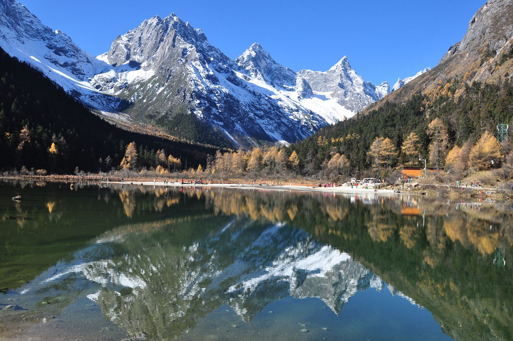 四姑娘山俏麗的身影倒映在天際湖內(nèi),此等美景入詩(shī)入畫。李仁奇 攝
