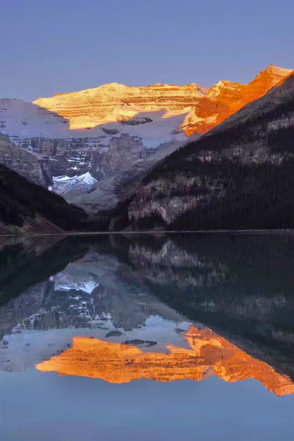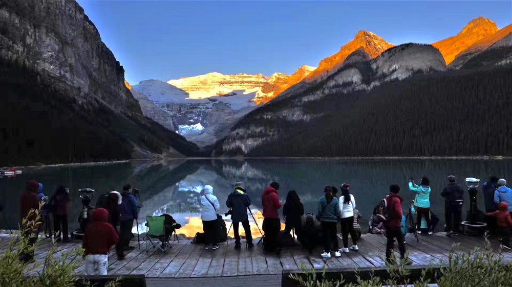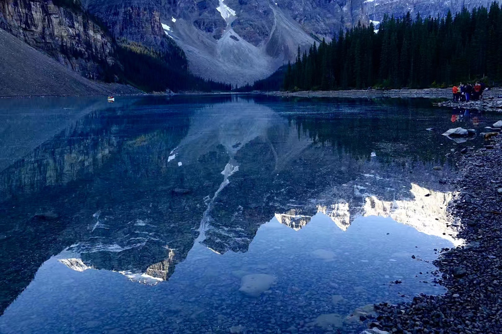 湖水晶瑩剔透,在鋸齒狀的山谷的擁環(huán)下,就像一塊寶玉。這塊“國(guó)寶”被印在加拿大20元的紙幣上。李仁奇 攝