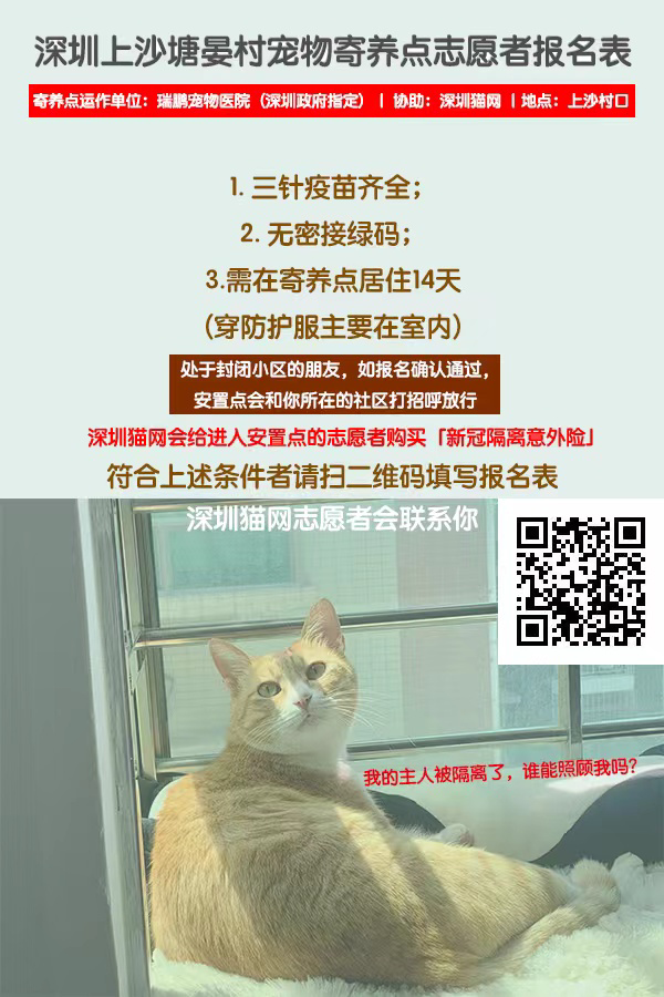 3月17日,深圳福田區(qū)正式官宣,根據疫情防控需要,對上沙塘晏村部分區(qū)域居民以家庭為單位異地集中健康監(jiān)測14天。同時,也對居民寵物也有了妥善的安排,小型寵物可攜帶陪同,對于不能攜帶的寵物,啟用“愛心驛站”進行免費托管。