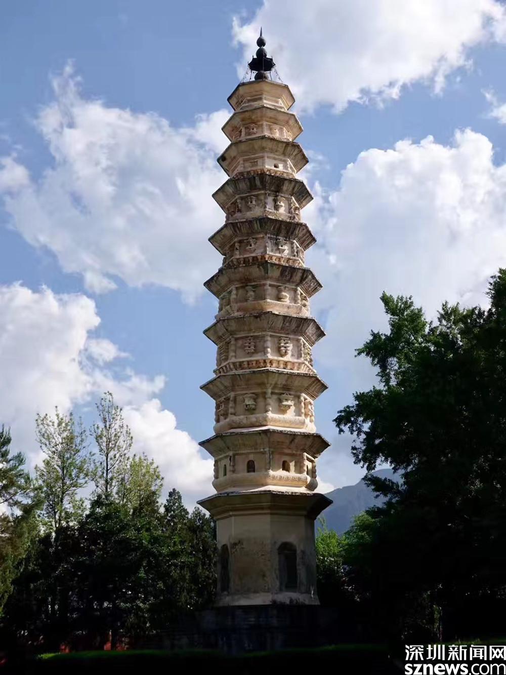 在千尋塔的塔頂四角,原來鑄有4只巨大的金翅鳥,“金翅鳥”又名“大鵬金翅鳥”,為佛教護法神中的“天龍八部”之一,傳說能鎮(zhèn)水患,后毀于地震。李仁奇 攝