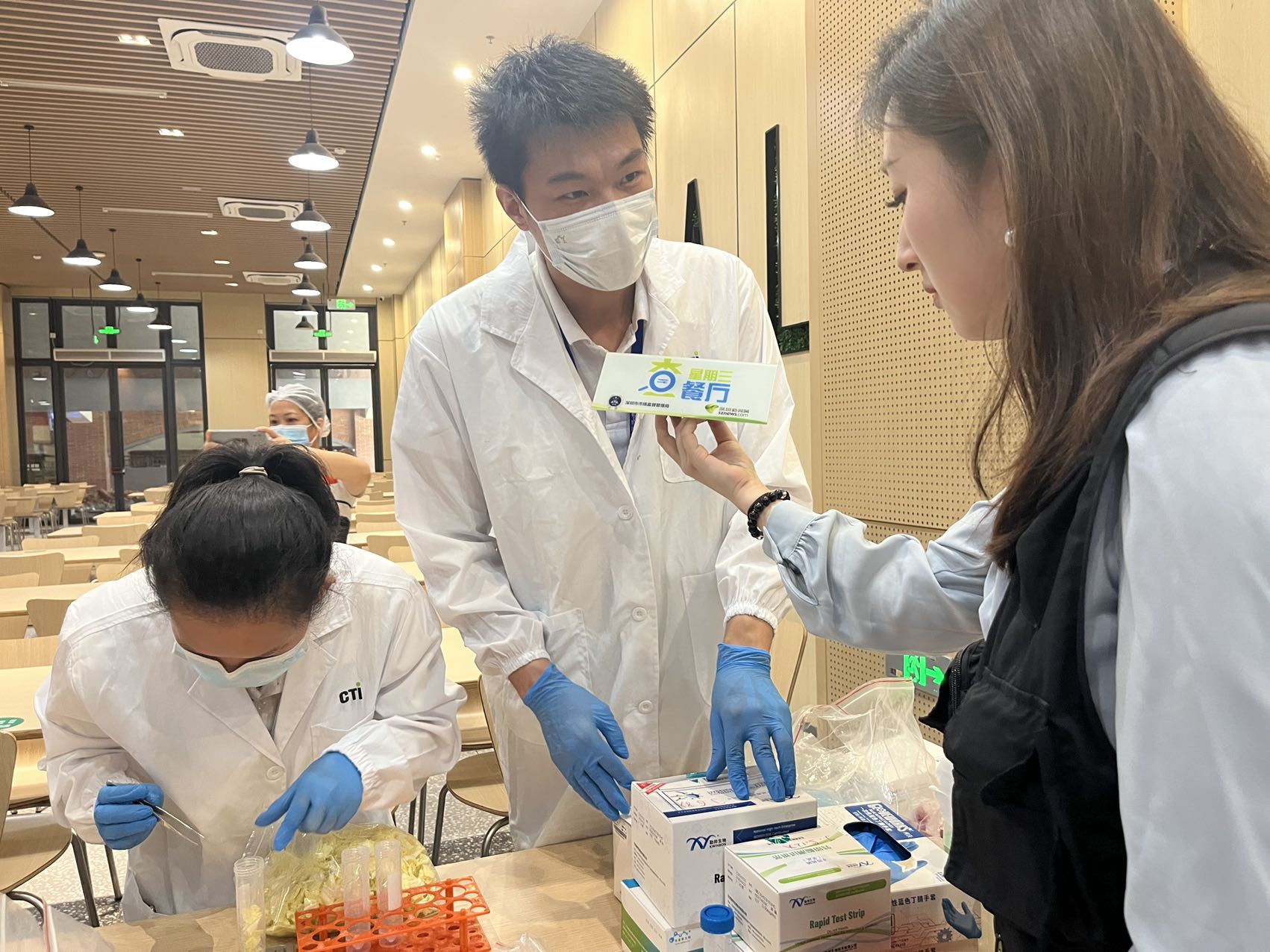 執(zhí)法行動進(jìn)行的同時,快檢人員也來到現(xiàn)場對食材進(jìn)行抽樣檢測。據(jù)介紹,本次抽樣檢查的食材樣品均合格。
