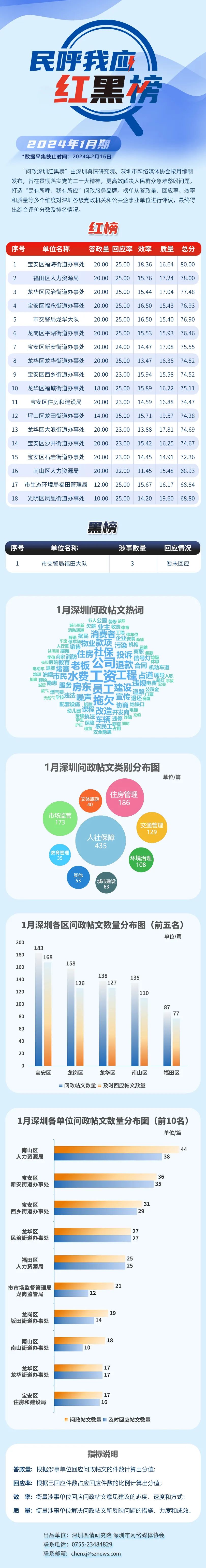 據(jù)悉,本期榜單采集的帖文主要來自深圳論壇、深圳各區(qū)政府官網(wǎng)、人民網(wǎng)領導留言板等平臺,所采集帖文發(fā)布時間為2024年1月1日至1月31日。