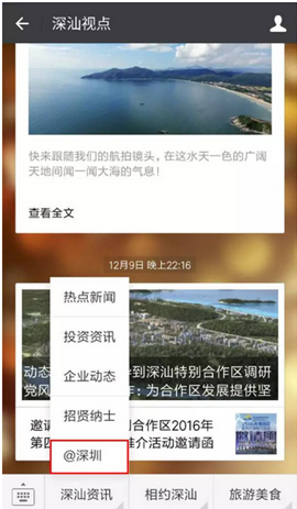 入駐的黨政自媒體:之前入駐的深圳發(fā)布、市交委、公安發(fā)布、政協(xié)、民政、公積金管理中心、市質(zhì)監(jiān)、工務(wù)署、司法、衛(wèi)計委、口岸辦、人社、文博會之外,近期入駐的大V伙伴還有深汕視點(diǎn)、深圳通等。各區(qū)(新區(qū))官方微信公眾號均組團(tuán)入駐。