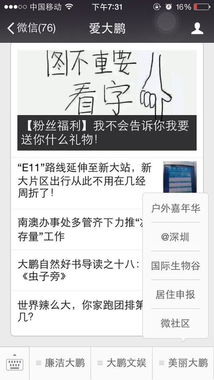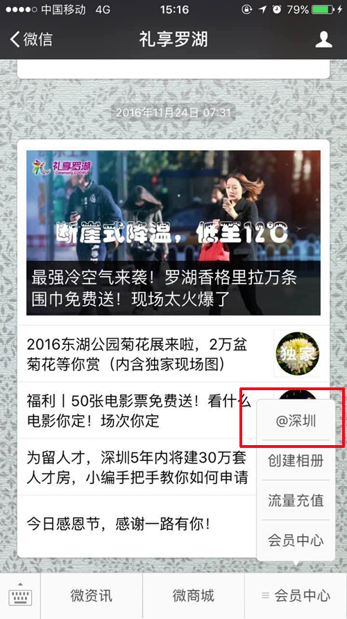 12月1日,羅湖區(qū)經(jīng)促局創(chuàng)建的首個(gè)區(qū)級(jí)商圈資源共享的官方微信“禮享羅湖”正式入駐“@深圳”平臺(tái),也是繼國(guó)內(nèi)首個(gè)城市級(jí)自媒體內(nèi)容平臺(tái)“@深圳”上線以來,又一入駐的官方微信。“@深圳”包括手機(jī)網(wǎng)站和APP客戶端兩個(gè)形態(tài),嵌入微信菜單鍵的為手機(jī)網(wǎng)站,此外還有單獨(dú)安卓版和蘋果版APP可供用戶下載。