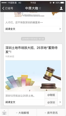 12月1日,中原地產(chǎn)代理(深圳)有限公司官方微信“中原大咖”正式入駐“@深圳”平臺(tái)。