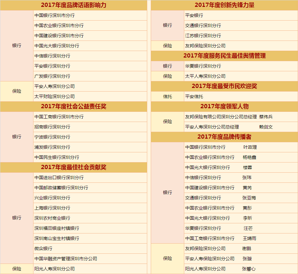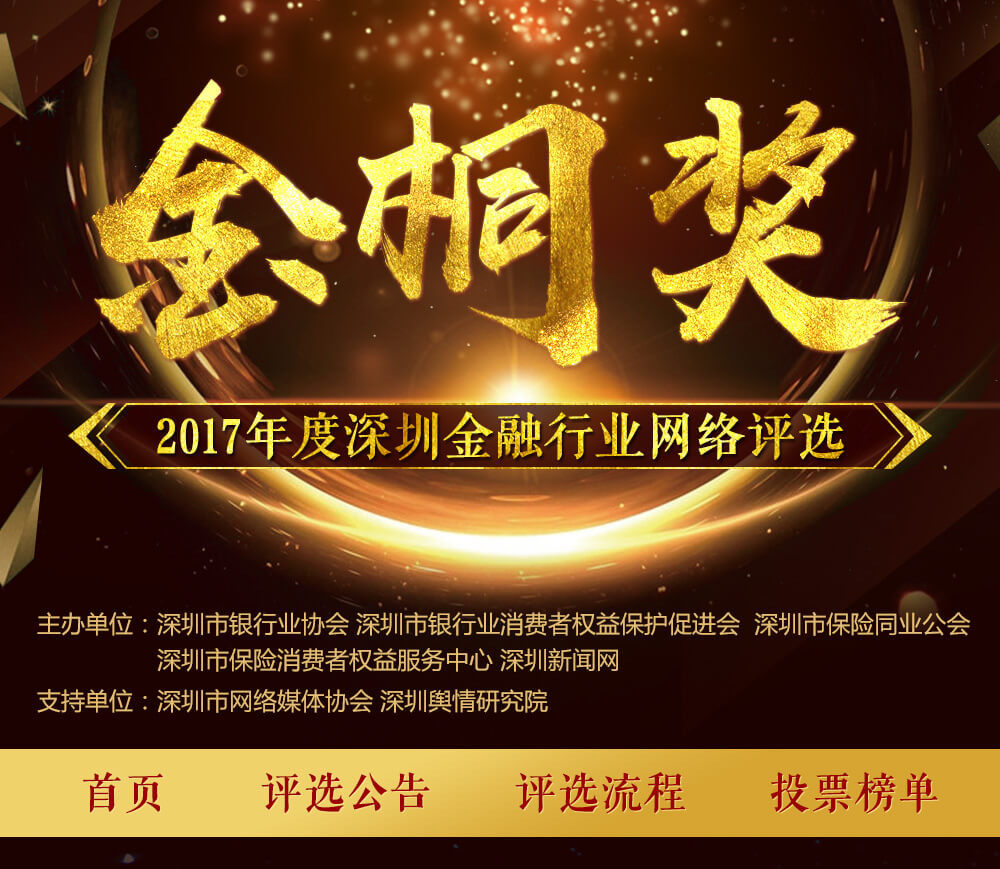 2017年,深圳金融實(shí)現(xiàn)快速發(fā)展。為了讓金融真正回歸服務(wù)實(shí)體經(jīng)濟(jì)的本源,真正脫虛向?qū)崳钲谛侣劸W(wǎng)將聯(lián)手行業(yè)權(quán)威協(xié)會(huì)、第三方機(jī)構(gòu)、媒體,以“新時(shí)代·新服務(wù)·新金融”為主題,以深圳金融機(jī)構(gòu)如何回歸本原、改革創(chuàng)新、服務(wù)實(shí)體經(jīng)濟(jì)為核心,從“品牌話語影響力”、“創(chuàng)新先鋒力量”、“輿情管理 服務(wù)民生”三個(gè)角度出發(fā),邀請眾多金融機(jī)構(gòu)共同發(fā)力,自覺加入金融回歸服務(wù)實(shí)體經(jīng)濟(jì)本源這一滾滾時(shí)代洪流中來。作為一個(gè)金融公民,我們也盡一份該盡的社會(huì)責(zé)任,為市民遴選最能代表深圳本地實(shí)力及形象的金融機(jī)構(gòu),同時(shí)頒發(fā)重磅大獎(jiǎng):“金桐獎(jiǎng)——年度品牌話語影響力”、“金桐獎(jiǎng)——年度創(chuàng)新先鋒力量”、“金桐獎(jiǎng)——服務(wù)民生最佳輿情管理”。